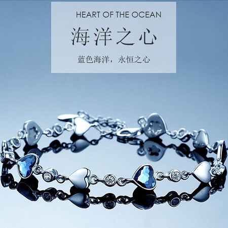 这款欧莱帝水晶手链的名字叫海洋之心,没错,就是与《泰坦尼克号》那颗海洋之心吊坠同名,代表着至死不渝的唯美爱恋。手链上的蓝色心形水晶是电影中那颗吊坠的缩小版,每一个角度都非常闪耀迷人,璀璨夺目。这是一款非常精致浪漫的手链,不管是送女友还是送闺蜜,都是超级棒的礼物。