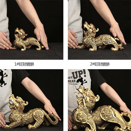 貔貅作为瑞兽,本身就有招财进宝的寓意,这些貔貅都由大师开过光,有保平安的功效。这款由纯铜打造的招财貔貅摆件,不管是放在客厅,还是放在办公桌上,都是一件不错的工艺品摆件。纯铜的它,整个都金灿灿的,显得非常贵气有格调。这一系列的貔貅摆件,每一只都有各自的小特点,可以根据自己的喜好去选择购买。有大有小,放在哪里都非常适用,可以放心选购。
